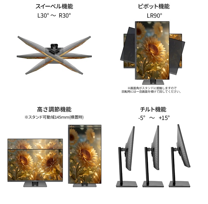 縦回転(ピボット)機能 | あり 「LR90o」 |