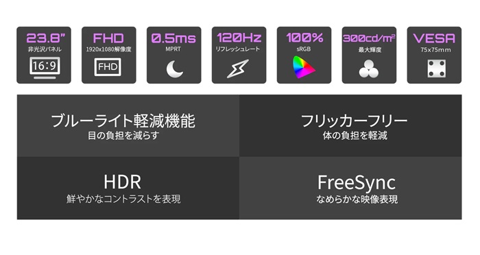 23.8” IPSパネル 120Hz対応ゲーミングモニター