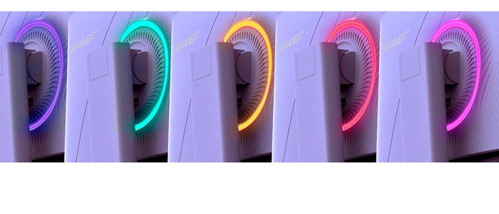 背面LEDがカラーグラデーションで点灯。ゲーミングルームが彩られます。