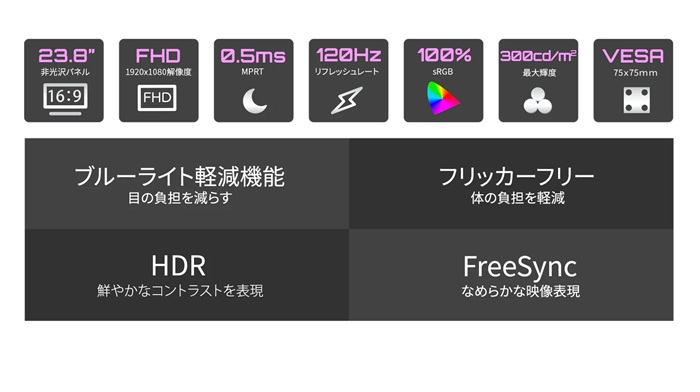 23.8” IPSパネル 120Hz対応ゲーミングモニター