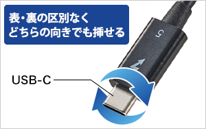 USB-Cコネクターは表と裏の区別がないため、向きを気にせず接続できます。