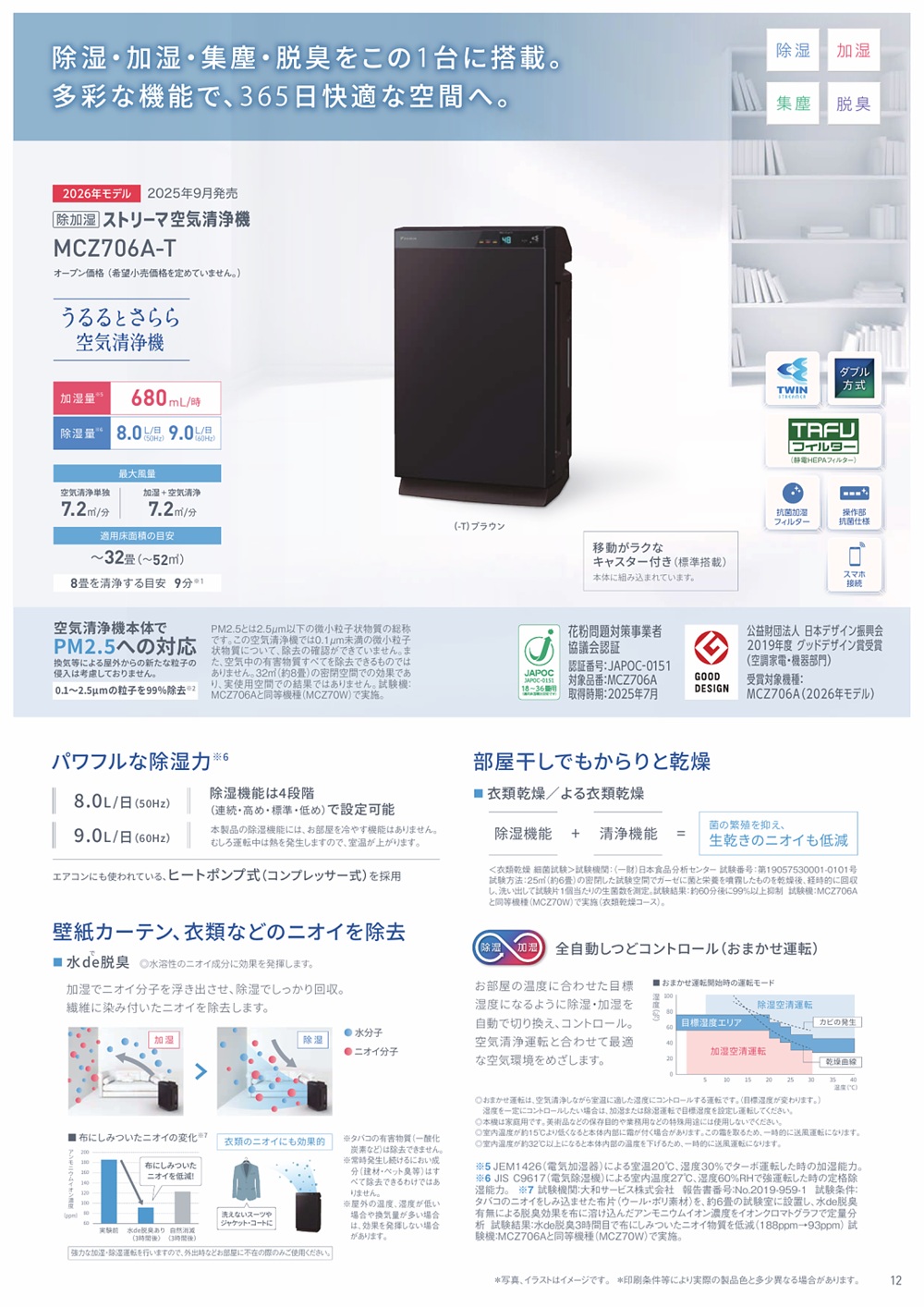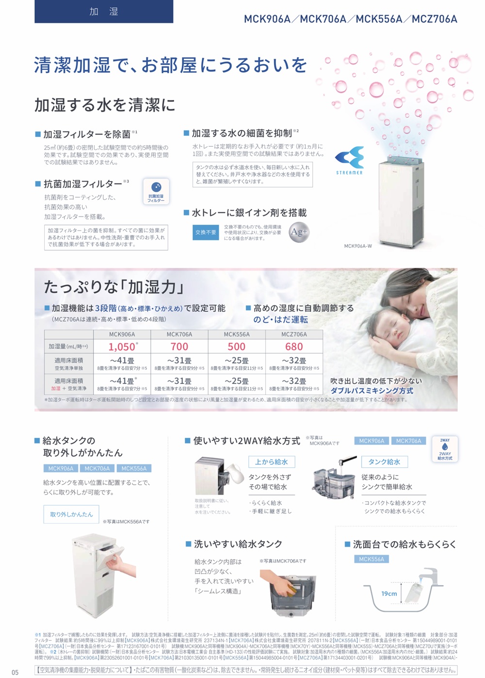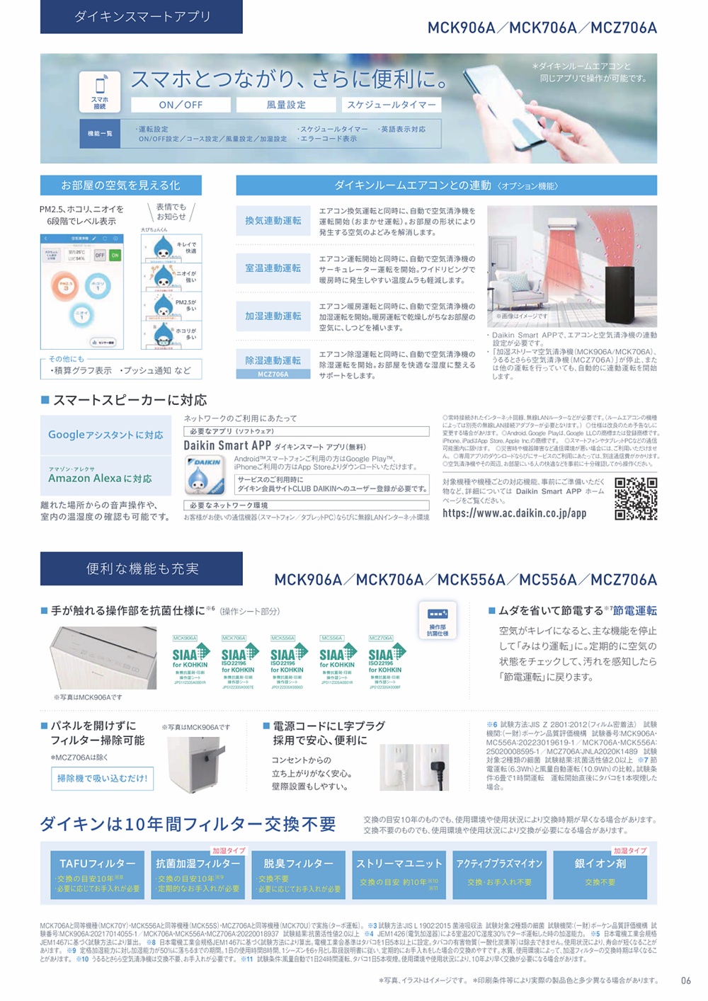 | 1日の電気代目安 | 【空気清浄運転の場合】7.5円、【節電運転時】3.7円 |