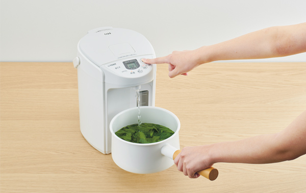 料理の下ごしらえや、コーヒー、お茶、調乳などの用途に合わせて、最適な湯温をお選びいただけます。