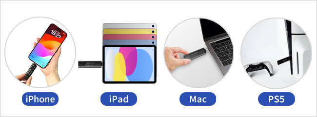 本商品は、USB-A&USB-C®対応で、exFAT形式でフォーマット済みです。パソコン、スマホ、タブレットなど異なるデバイス間のデータ移動もかんたんで、挿してそのまますぐに使えます。
