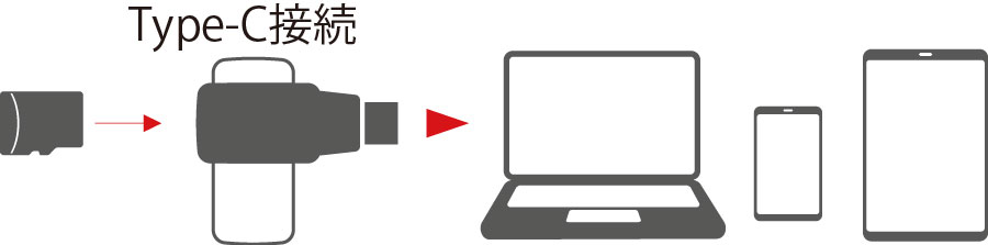 USB Type-C対応ならWindowsパソコンはもちろん、Macやスマホ、タブレットにも対応。データの読み込み/書き込みのほか、カードメディアを介して機器のデータの移動も簡単に行えます。