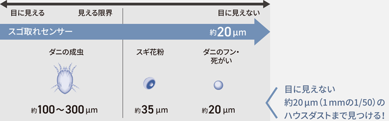 センサーが見分けるハウスダストの検知範囲