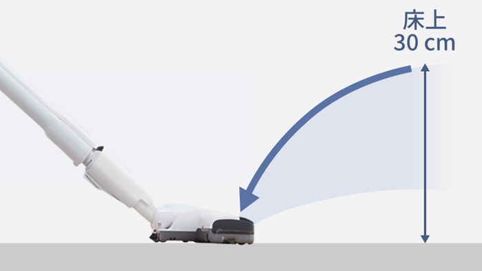 ノズルの上方向から吸気・集じんして、床上30cmに浮遊するハウスダストもキャッチします。