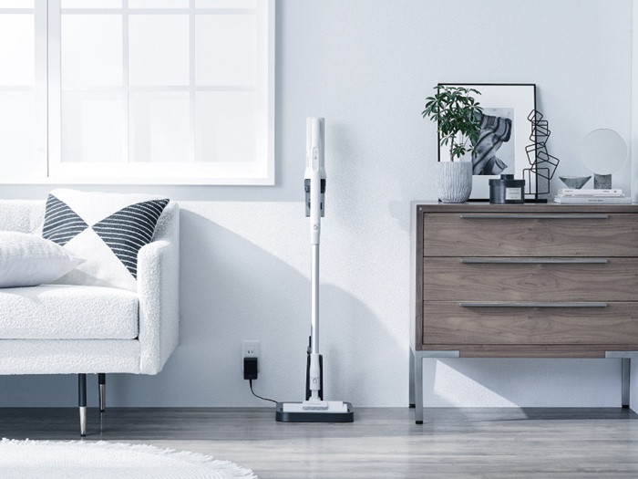 コンパクトに収納できる充電台付き。置く場所に悩まず、部屋の中にすっきり置けます。