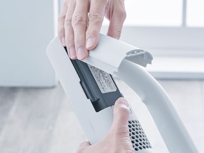 コードが目立たず、インテリアにも馴染むデザインです。 バッテリー交換は工具不要。手軽に取り換えられます。