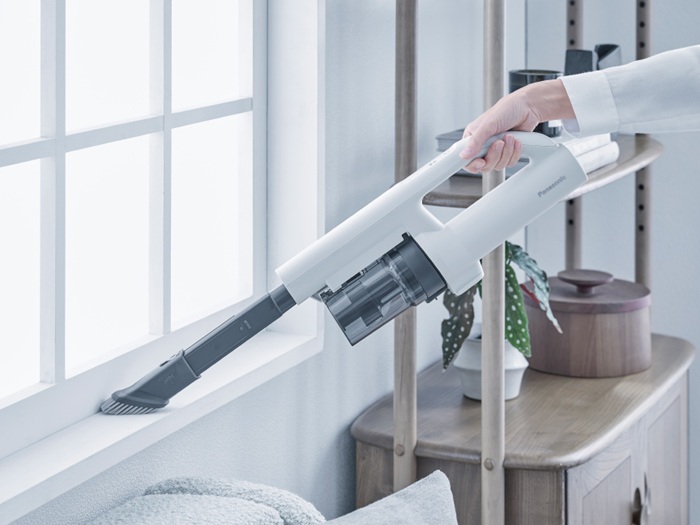 付属のブラシ付きすき間ノズルを使えば、家具のすき間、サッシの溝、ソファや車のシートのゴミもしっかり吸って手軽にお掃除。
