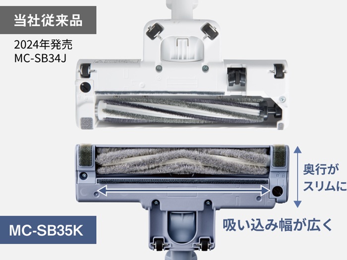 吸込み幅が広がり、かつ、奥行きがスリムに。さらに、使用する材料を見直し取り回しやすいよう軽量化。軽量化しつつも強度や耐久性はしっかり維持しています。