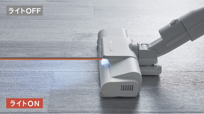 LEDライト搭載で、見えにくいところのゴミもくっきり照らす