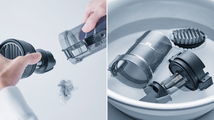 | ブラシは取り外して水洗い可能 | ダストボックスは取り外し簡単。水洗いもできます。 |