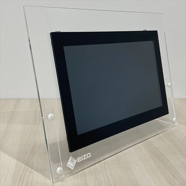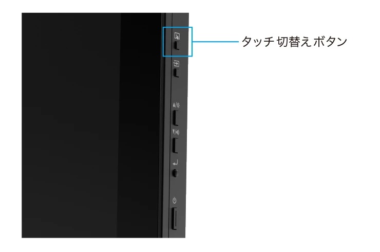 モニター側面にタッチパネル機能の有効/無効を切替えできるボタンを装備。パネル表面を清掃する際などに一時的に無効にすることで誤作動を防止できます。