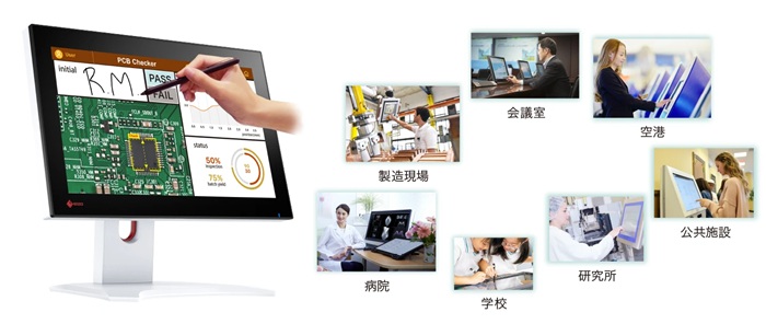 指でのタッチに加え、ペンを使った文字入力にも対応。ドラッグやフリック等の操作をスムーズに行え、文字や図表の書き込みを必要とする公共施設・病院・工場・オフィスなどのさまざまな市場に活用できます。