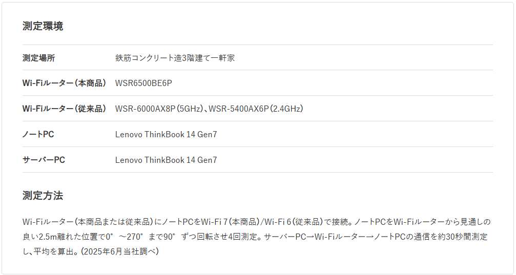 近距離で本商品とノートPCをWi-Fi 7で接続した場合、従来品とWi-Fi 6で接続した場合よりも通信速度が向上しました。
