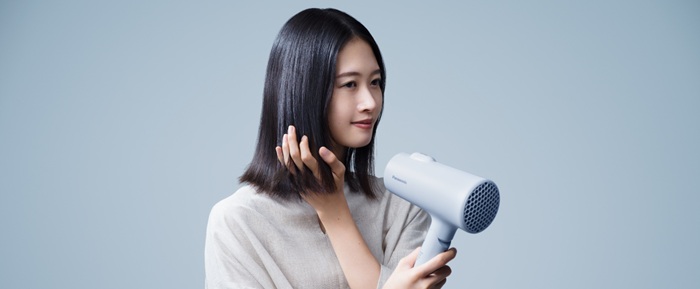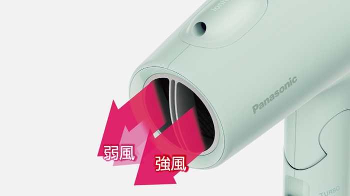 温風とマイナスイオンの吹出口を分け、マイナスイオンに含まれる水分をドライヤーの熱から守る外付けマイナスイオン搭載。