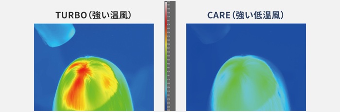 | 温風温度 | 約90℃(TURBO時)、約65℃(低温ケアモード時) |