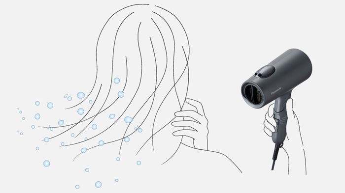 ヘアドライする時にイオンチャージパネルをハンドルと握るだけ。髪にマイナスイオンをよりひきつけます。