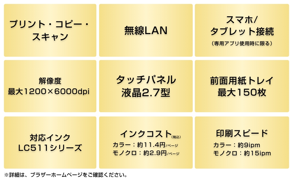 無線LAN・自動両面印刷・タッチパネル液晶搭載。標準的な機能をそろえたシンプルモデル