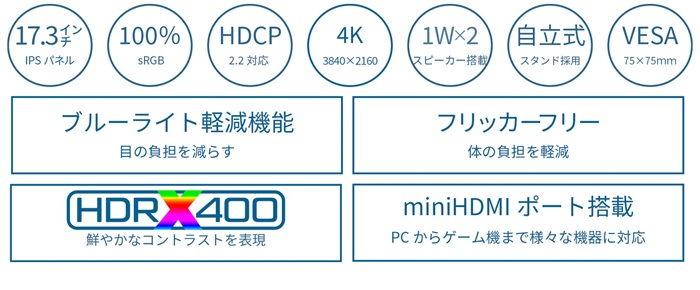 | HDR方式 | HDR400相当(miniHDMI/USB-C) |