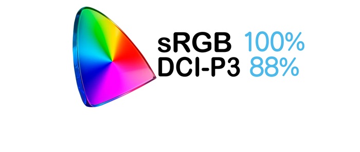 | 表示色 | 1677万色 sRGB 100% DCI-P3 88% |