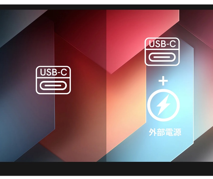 USB-C接続のみの場合、接続機種の給電能力に合わせて明るさを抑えて表示します。