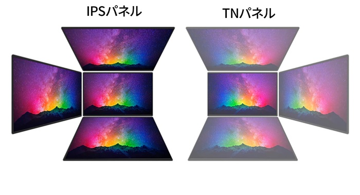上下左右170°の視野角度を持つIPSパネルは標準的なTNパネルと異なり、 斜めから見ても色やコントラスト変化がおきにくい鮮明な画像を映し出します。