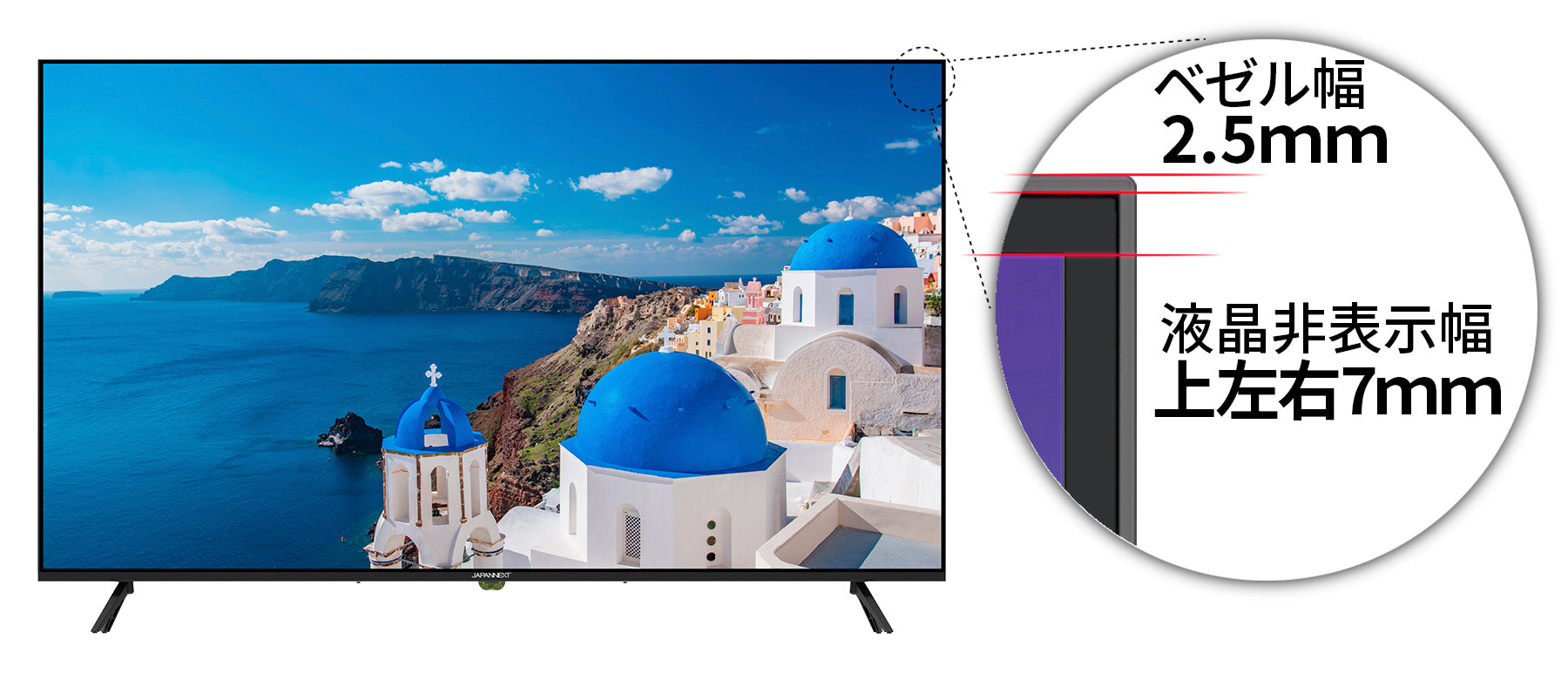 大型ながらベゼル幅はわずか2.5mm 液晶非表示幅は7mm。