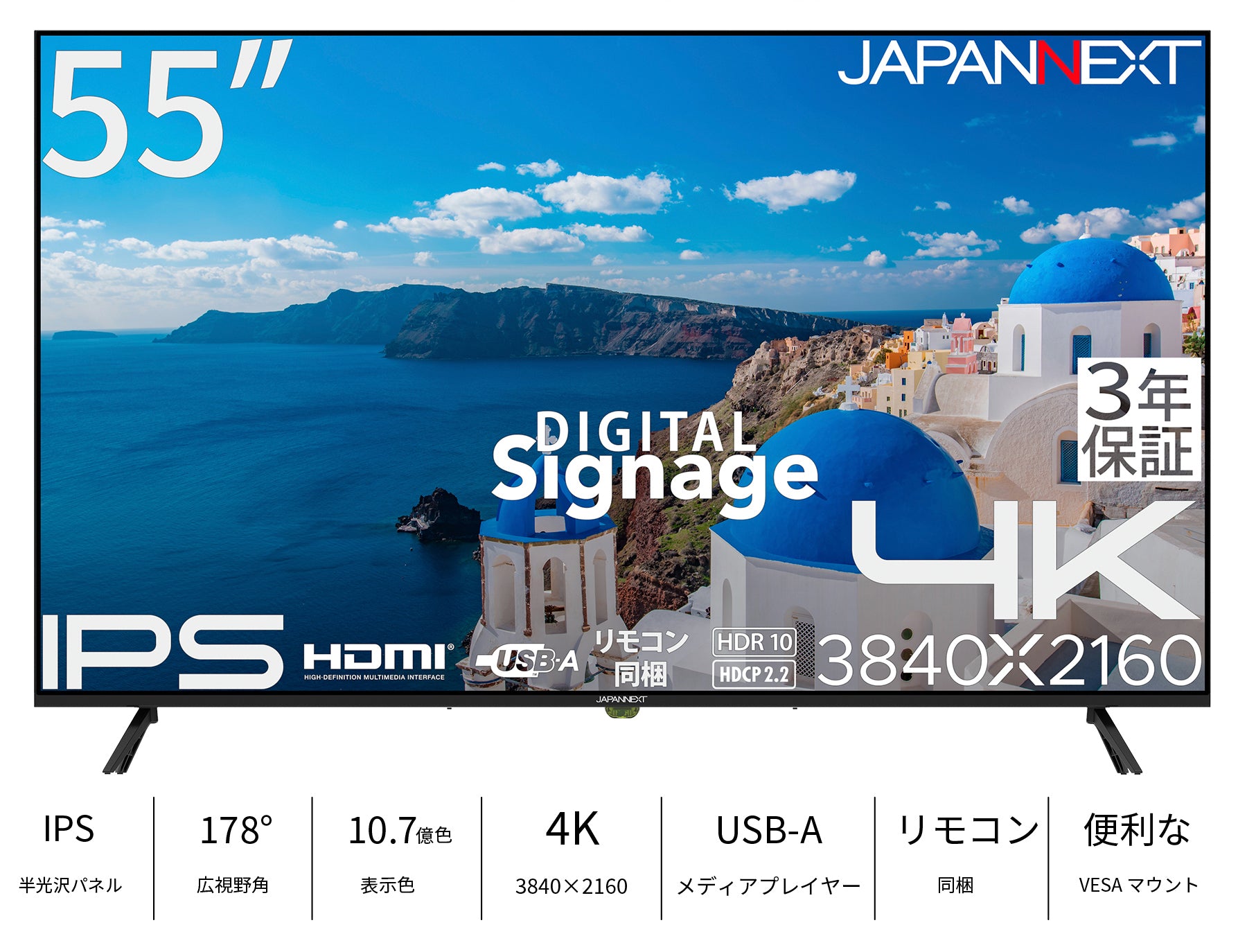 JAPANNEXT JN-IPS55UHD-M-H3 [4K HDR 55インチ液晶ディスプレイ IPS HDMIx3 デジタルサイネージ PCモニター 3年保証]