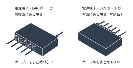 電源端子・LANポートを背面集約、ケーブルをまとめやすい