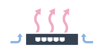 ファンレス設計で高い静音性を実現しました。オフィスなどでの使用においても音を気にすることなくご使用いただけます。また、可動部分をなくすことで信頼性も向上しています。