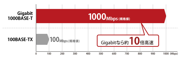 | ※最大実効伝送速度とは、省エネ法で定める測定方法により測定されたフレーム長が1,518バイトのときにおける最大の実効伝送速度です。 | |