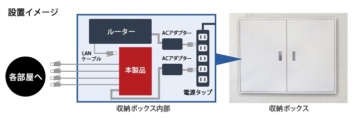 壁面設置が可能、収納ボックスへスッキリ設置