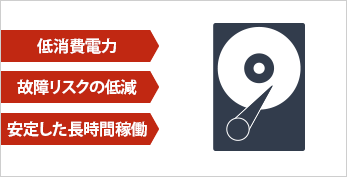常時稼働を想定したNASシステム用に設計されたハードディスクを搭載しているので高い信頼性と安定した動作が可能です。これにより故障のリスクが低減し寿命が改善したことにより、ハードディスクの3年保証が実現しました。