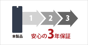 本商品は、3年の保証付き。購入から3年以内※に故障した場合、メーカーにて無償で修理させていただきます。大切なデータのバックアップに最適です。