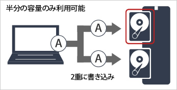 ※ ミラーリング(RAID 1)はデータ保護に有効な機能ですが、データの完全保護は保証いたしかねます。大事なデータはバックアップと併用ください。