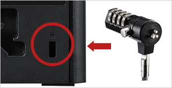 本体背面にセキュリティースロットを搭載。セキュリティーグッズとの組み合わせで、盗難防止に役立ちますので、店舗や会社での使用にもおすすめです。
