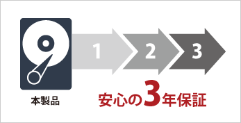本商品は、3年の保証付き。購入から3年以内に故障した場合、メーカーにて無償で修理させていただきます。大切なデータを扱うビジネス用外付けHDDに、安心してお使いいただけます。