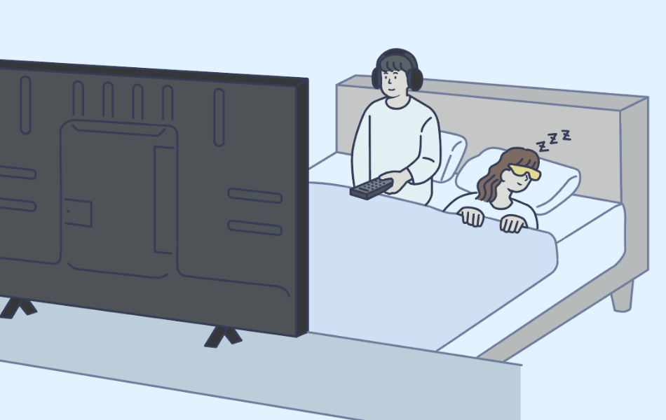 家庭でワイヤレスヘッドホンなどを接続して離れた場所でテレビの音声を聴くことができるので、夜間の音漏れを気にすることなくテレビを楽しめます。