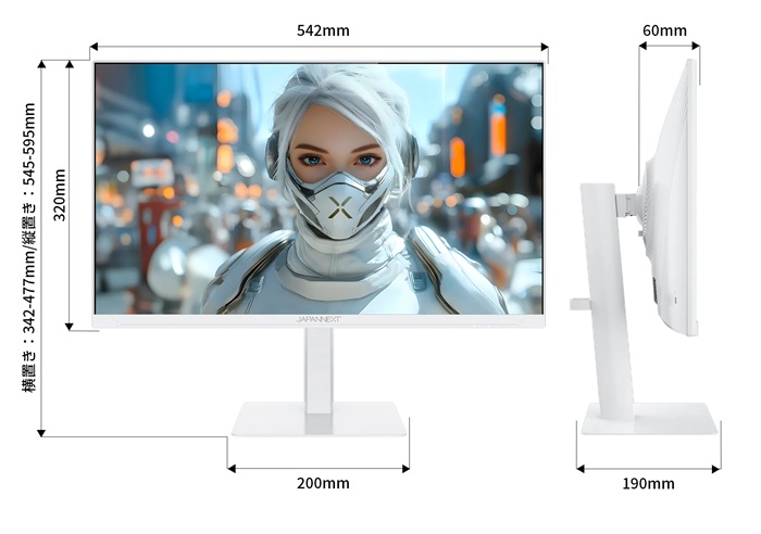 | 本体サイズ(H×W×D) | 高 横置き342-477/縦置き545-595mm×幅 横置き542/縦置き320mm×奥行190mm |