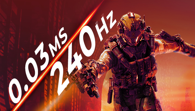 240Hzのリフレッシュレートと0.03msの応答時間により、最良のパフォーマンスに貢献し、チームの結束力を高めます。スムーズなゲームプレイが、あなたを勝利へと導きます。