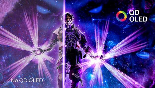 QD-OLEDは、量子ドット技術を駆使し、これまでにない色再現性と輝度を両立させています。従来のディスプレイ方式とは一線を画し、自発光する量子ドットを用いることで、広範な色域を極めて高いコントラスト比で実現。青色光を光源とし、量子ドット発光層が鮮やかな色彩を創出。これにより、QD-OLEDは高純度な色表現と広色域を維持しながら、圧倒的な輝度を可能にしました。