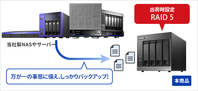 重要なオフィスデータを格納しているWindows Serverやメーカー製NAS「LAN DISK」でのバックアップ用途としてお使いいただけます。もちろん、パソコンに直接つないでデータバックアップ用としてもご使用いただけます。