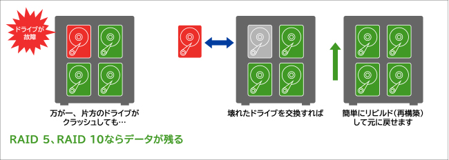 ※ RAIDでのデータの破損に対して保証するものではありません。