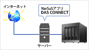 Windows OSを搭載したサーバーやNAS、PCなどに接続してご利用いただく場合には、サーバーやNAS側に「DAS CONNECT」をインストールしてください。同時に「NarSuSアプリ」もインストールされます。