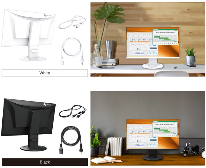 ホワイトモデルに加え、ブラックモデルも用意しています。モニターからスタンド、ケーブルに至るまで色を統一。明るく優しい雰囲気のオフィスにはオールホワイト、シックで落ち着いた雰囲気のオフィスにはオールブラック、など設置空間に合わせて選べます。