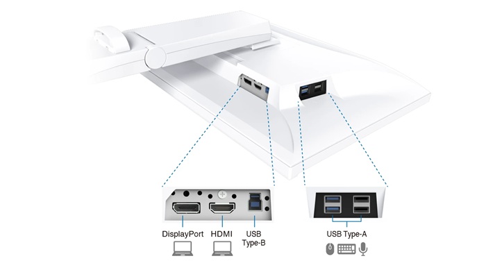 映像入力はDisplayPortTM、HDMI®入力端子を各1系統搭載。USBポートをモニター側面に4つ搭載し、マウスやキーボードなどの接続に便利です。