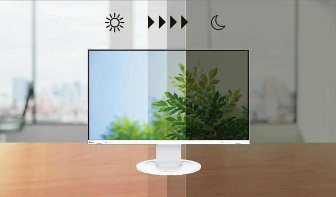 いつもちょうど良い明るさに環境光を感知し、周囲の明るさに応じて画面の明るさを自動で調整するAuto EcoView機能を搭載。環境照度への画面の明るさの追従性を上げることで、より自然な調光に進化。目の疲れを軽減します。 |