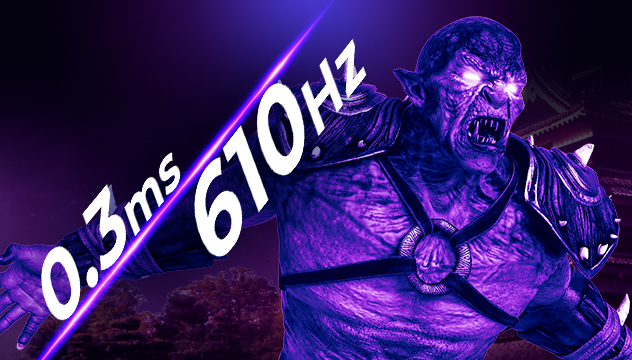 610Hzのリフレッシュレートと0.3msの応答速度により、ディスプレイはプロゲーミング基準に対応します。画面のブレを感じさせない極めて滑らかな映像体験を実現し、常に勝利に備えることができます。
